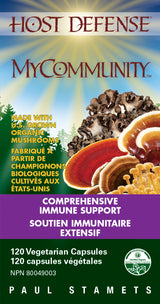 MyCommunity® propose 17 espèces de champignons puissants pour la santé du système immunitaire: * Royal Sun Blazei, Cordyceps, Enokitake, Amadou, Agarikon, Artist Conk, Reishi, Oregon Polypore, Maitake, Lion's Mane, Chaga, Shiitake, Mesima, Birch Polypore, Pearl Oyster, Split Gill Polypore et Turkey Tail.  MyCommunity est la formule multi-champignons créée à l'origine par Paul Stamets "", une formule complète de Host  défense pour soutenir l'immunité naturelle. *